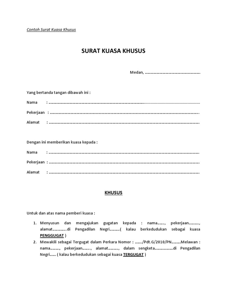 2, jeulingke kota banda aceh pekerjaan : Jl kebayoran lama, no 23 jakarta selatan untuk selanjutnya disebut sebagai pemberi kuasa. K.h mustofa gowa untuk selanjutnya disebut sebagai pihak pemberi kuasa, yang dalam hal ini telah memilih tempat kediaman hukum (domisili) di kantor kuasanya, dengan ini menerangkan memberi kuasa kepada: Contoh surat kuasa khusus tergugat. Karyawan swasta untuk selanjutnya disebut dengan pemberi kuasa.